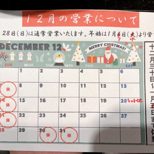 12月の営業日について