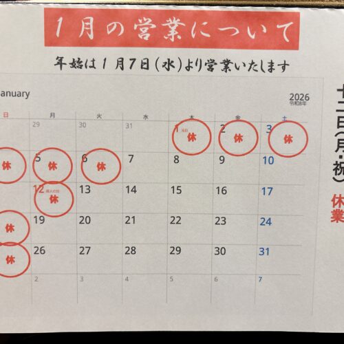 1月の営業について